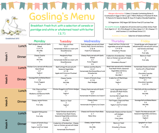 Our new building also offers us a fully functioning kitchen, allowing us to provide meals for the children, Please see our menu's below for more details.
